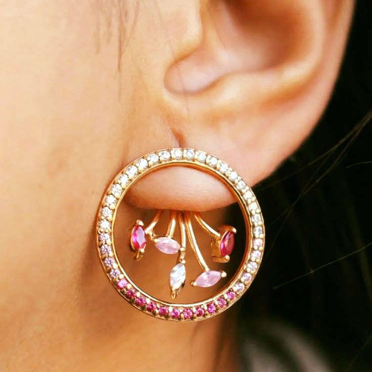 🔸 Circular open-hoop frame, lined with delicate pink and white zircons