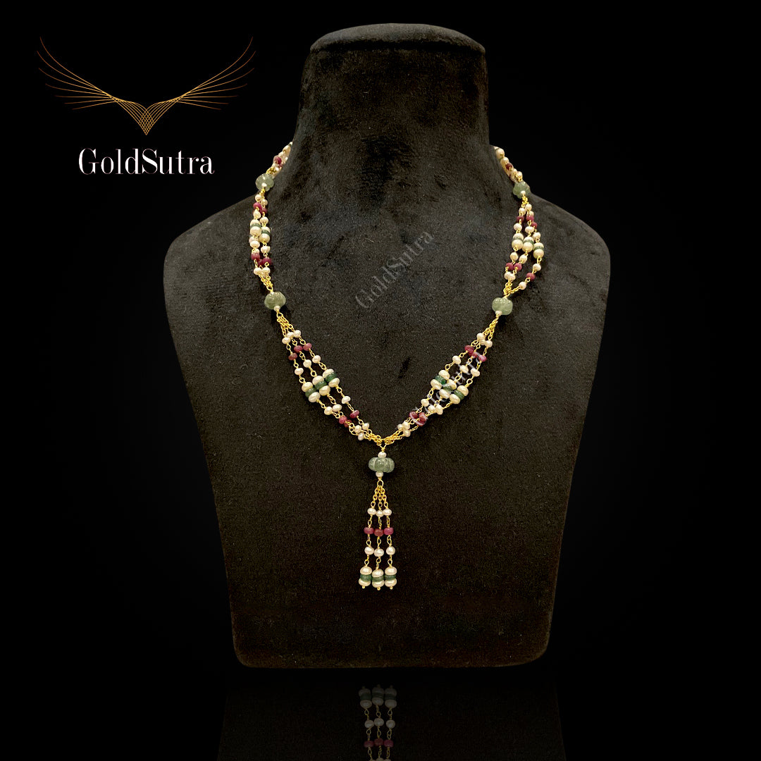 Our handcrafted 22k gold necklaces,adorned with rarerest of rare gemstones from the City of Nizams. Whether treating yourself or a loved one, these treasures are more than jewelry—they're timeless pieces of personal elegance and style.