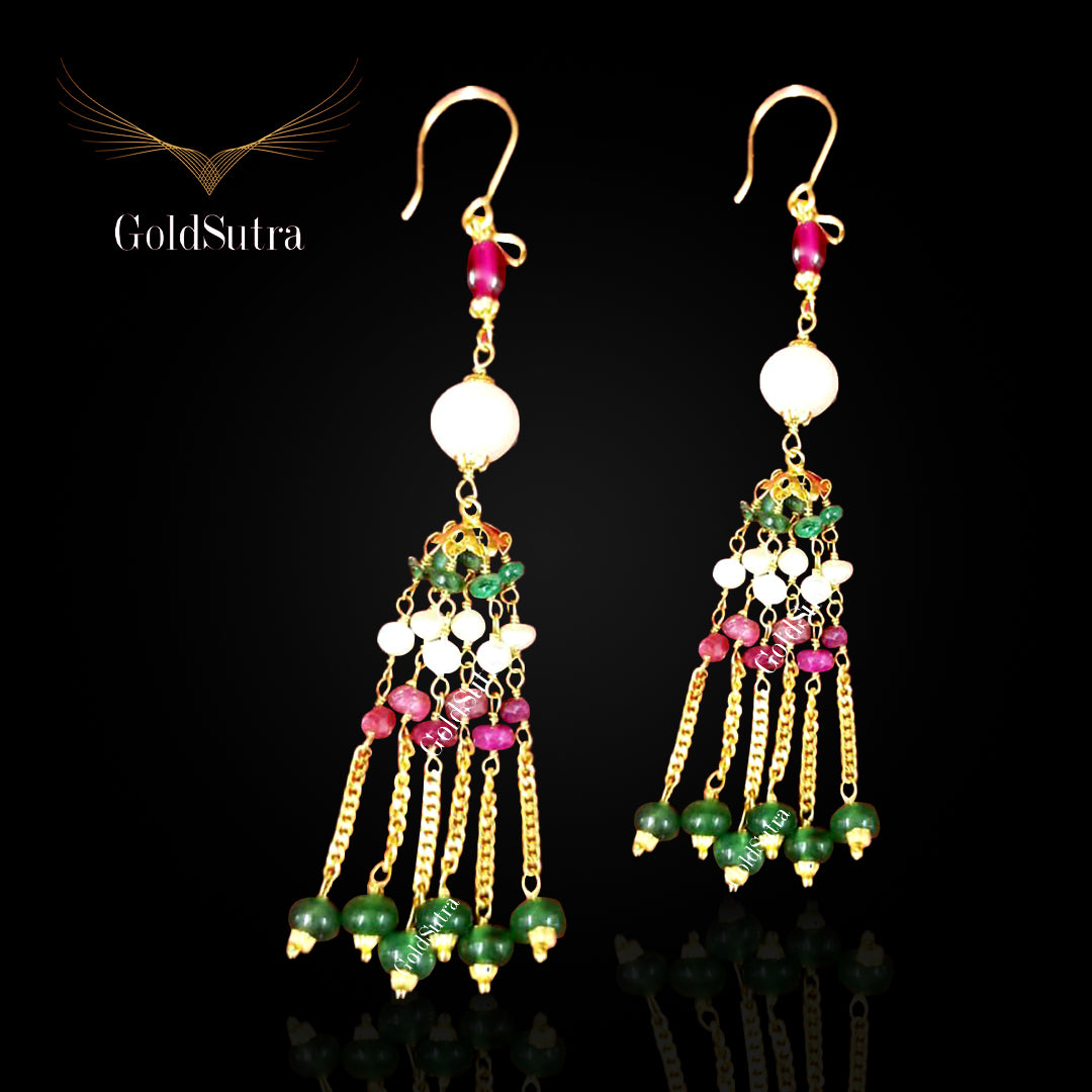 22K Gold earrings with precious gemstones in gold strings. Perfect for office wear