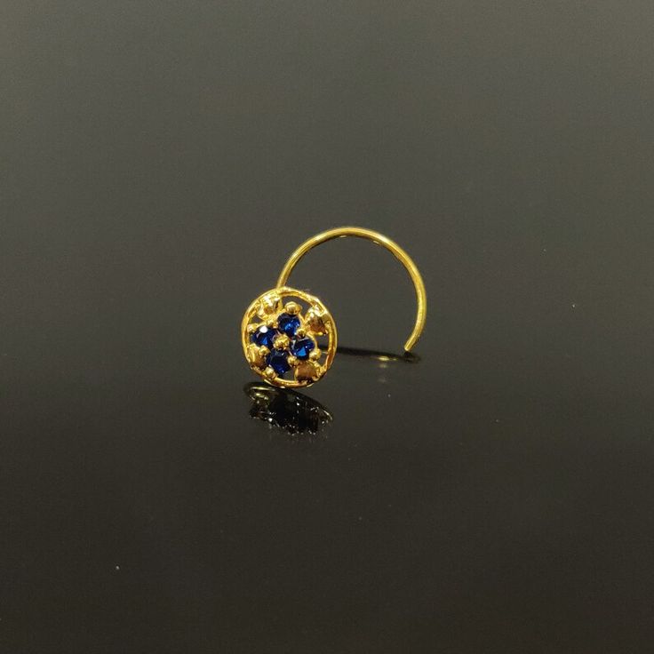 14K gold nosepin | Blue semi-precious stone nose ring | Minimalist nosepin with color | Elegant nose jewelry | Dainty gold nose ring