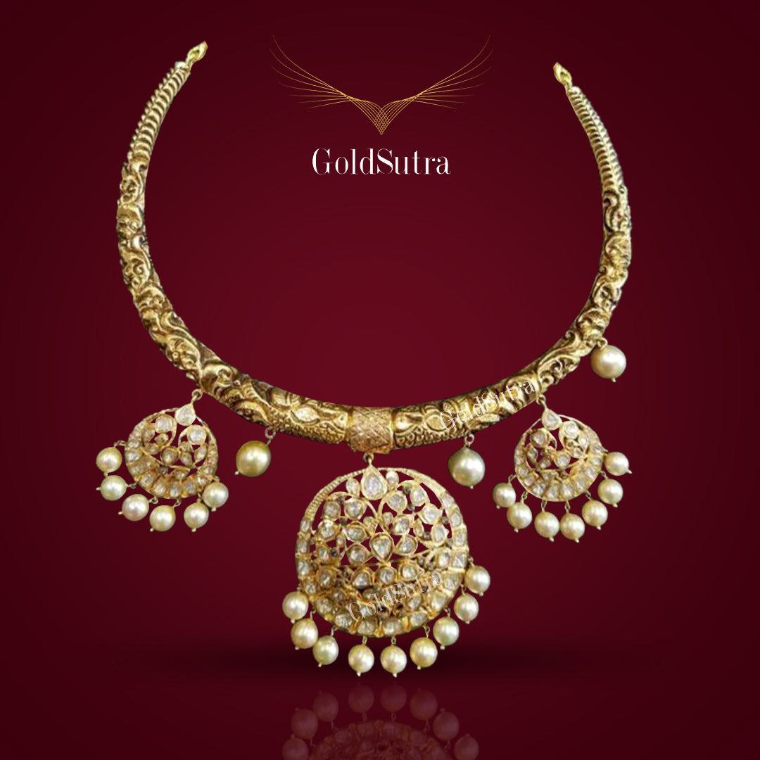 Step into the world of Rajasthan’s majestic artistry with our handcrafted Gold Kundan Polki jewellery—where heritage meets haute couture. This is not just jewellery; it’s an heirloom in the making, a testament to a craft reserved for royalty. Unlike commercial adaptations, this is authentic Kundan Polki, straight from the master artisans of Rajasthan, where every piece is a melody of gold, diamonds, and timeless elegance.