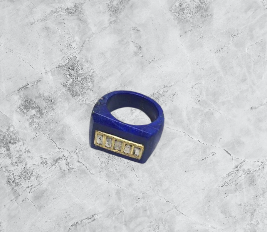 Carved from deep lapis lazuli, the stone of kings and queens, this ring holds the sky’s mystery and the sea’s depth. Embellished with 0.7 carats of uncut diamond polkis, set in 18k gold (10 grams), it revives the ancient regal codes of power, wealth, and divine protection — now reimagined for everyday rule-breakers and empire-builders.