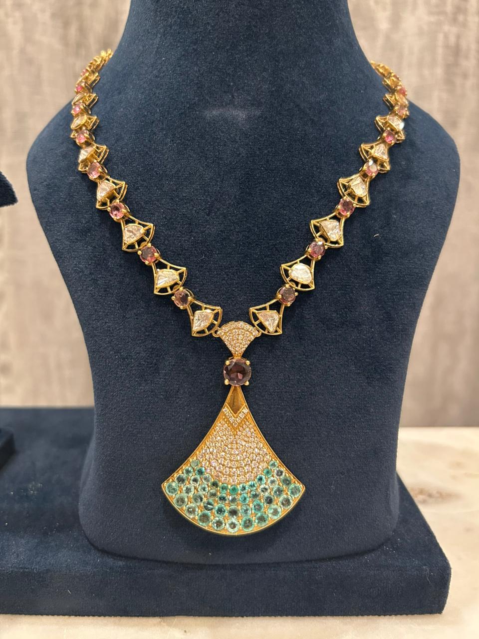 And here’s why pieces like this never sit on our shelves for long — the moment clients see the unique fan silhouette, the soft green enamel, and the diamond-like brilliance, they claim it on the spot. It feels exclusive, artistic, and delightfully different from traditional sets… which is exactly why it sells out quietly and quickly.