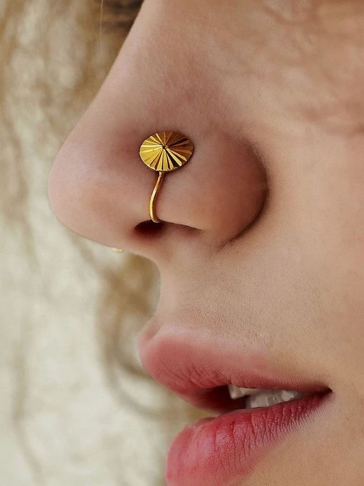 Gold-plated sun disc nosepin | No piercing nose ring in gold | GenZ bold nose jewellery | Sun-inspired nosepin design | 925 silver nose ring with gold finish | Trendy statement nosepin
