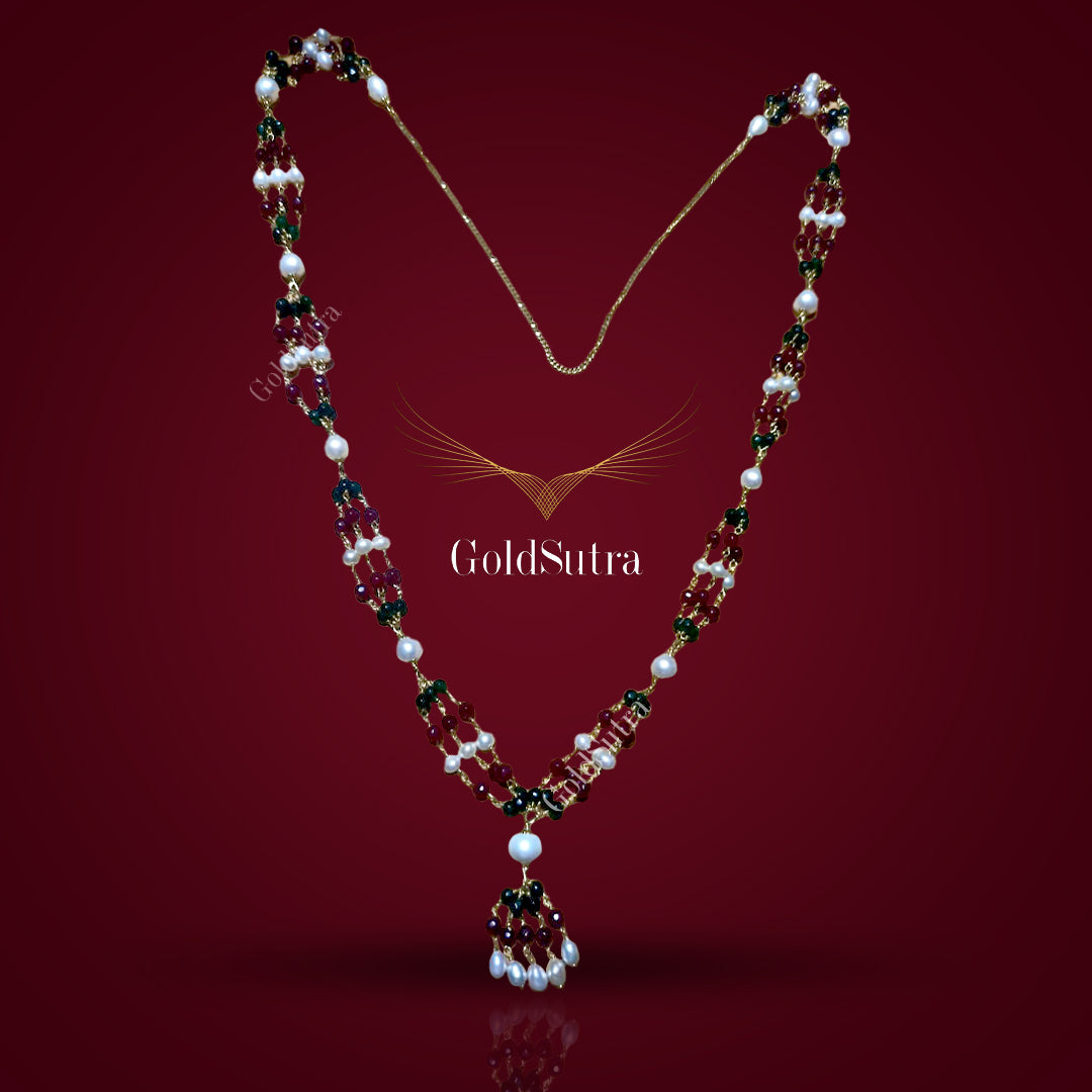 Our handcrafted 22k gold necklaces,adorned with rarerest of rare gemstones from the City of Nizams. Whether treating yourself or a loved one, these treasures are more than jewellery—they're timeless pieces of personal elegance and style.